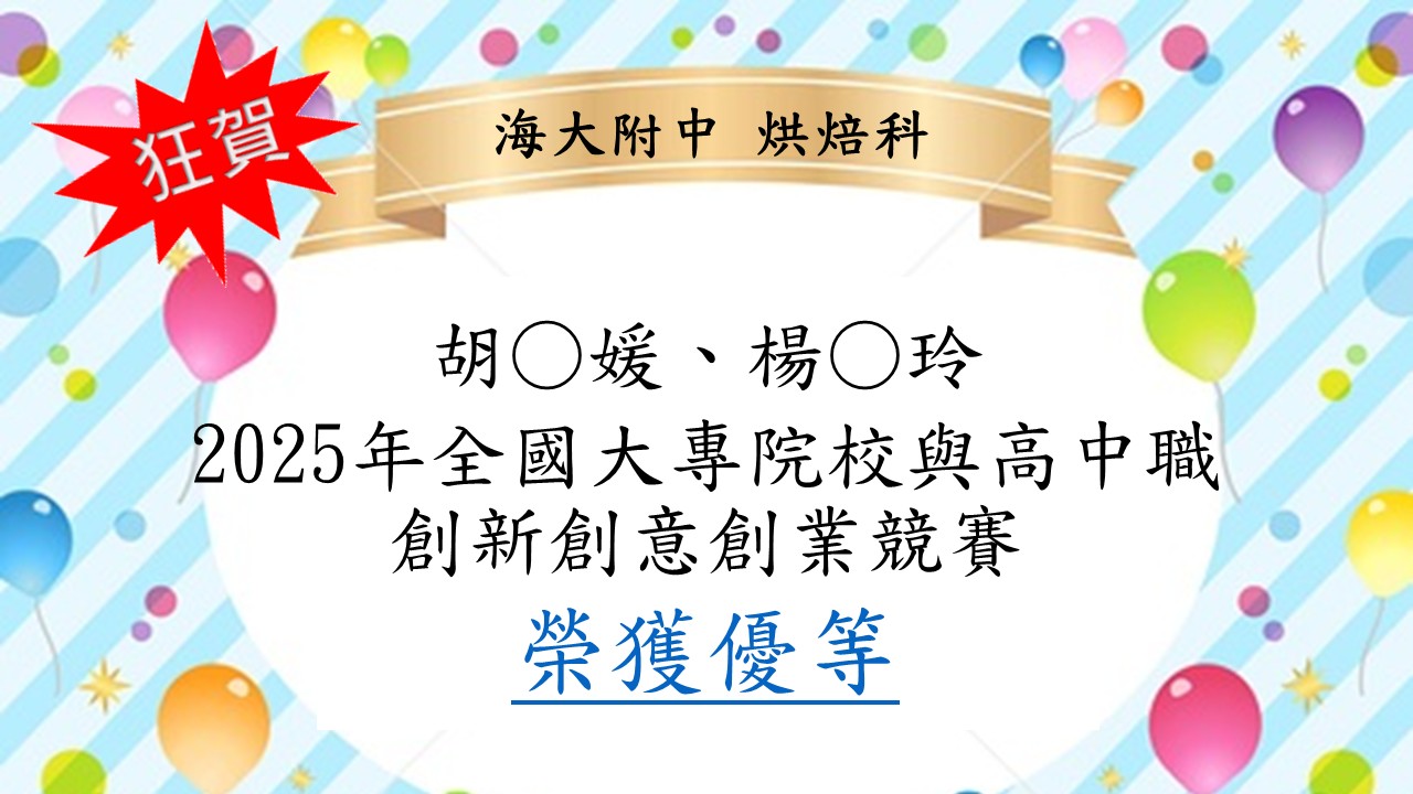 2025年全國大專院校與高中職創新創意創業競賽榮獲優等