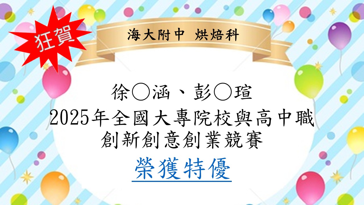 2025年全國大專院校與高中職創新創意創業競賽榮獲特優